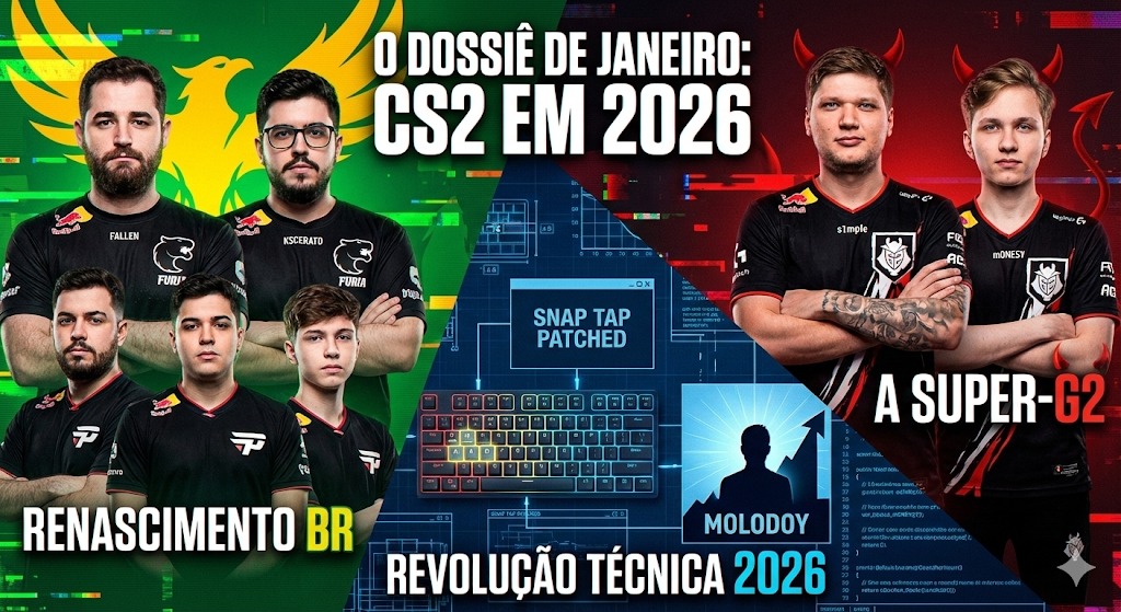 Lá fora, a chapa esquentou. Vazamentos indicam que o GOAT s1mple está treinando com a G2 Esports para formar uma dupla histórica com m0NESY. Além disso, a gigante 100 Thieves anunciou seu retorno ao CS2 com um time de estrelas. 👉 [Leia: O Rumor da G2 e a volta da 100 Thieves https://www.2fireesports.blog/s1mple-g2-esports-rumor-m0nesy-transferencia-2026]