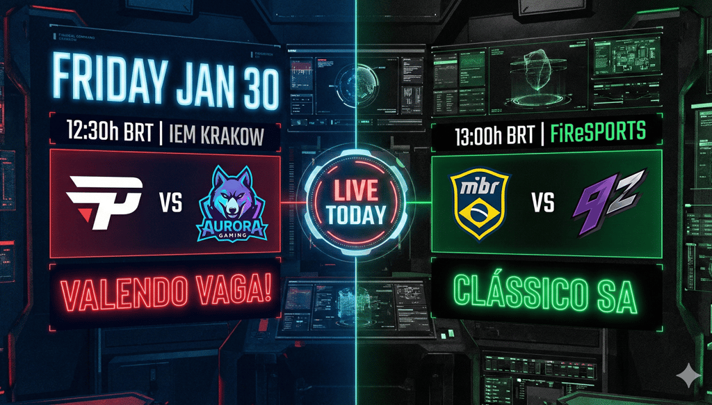 Agenda CS2 Sexta (30/01): paiN encara Aurora pela Vaga e MIBR joga Clássico às 13h!