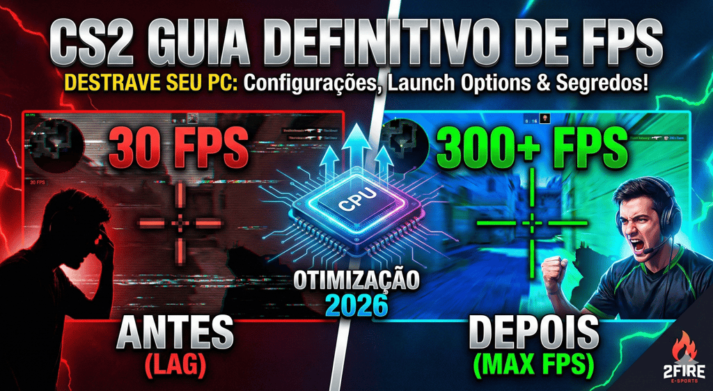 Guia Definitivo de FPS no CS2 (2026): Aumente seus Frames, Launch Options e Configurações para Rodar Liso